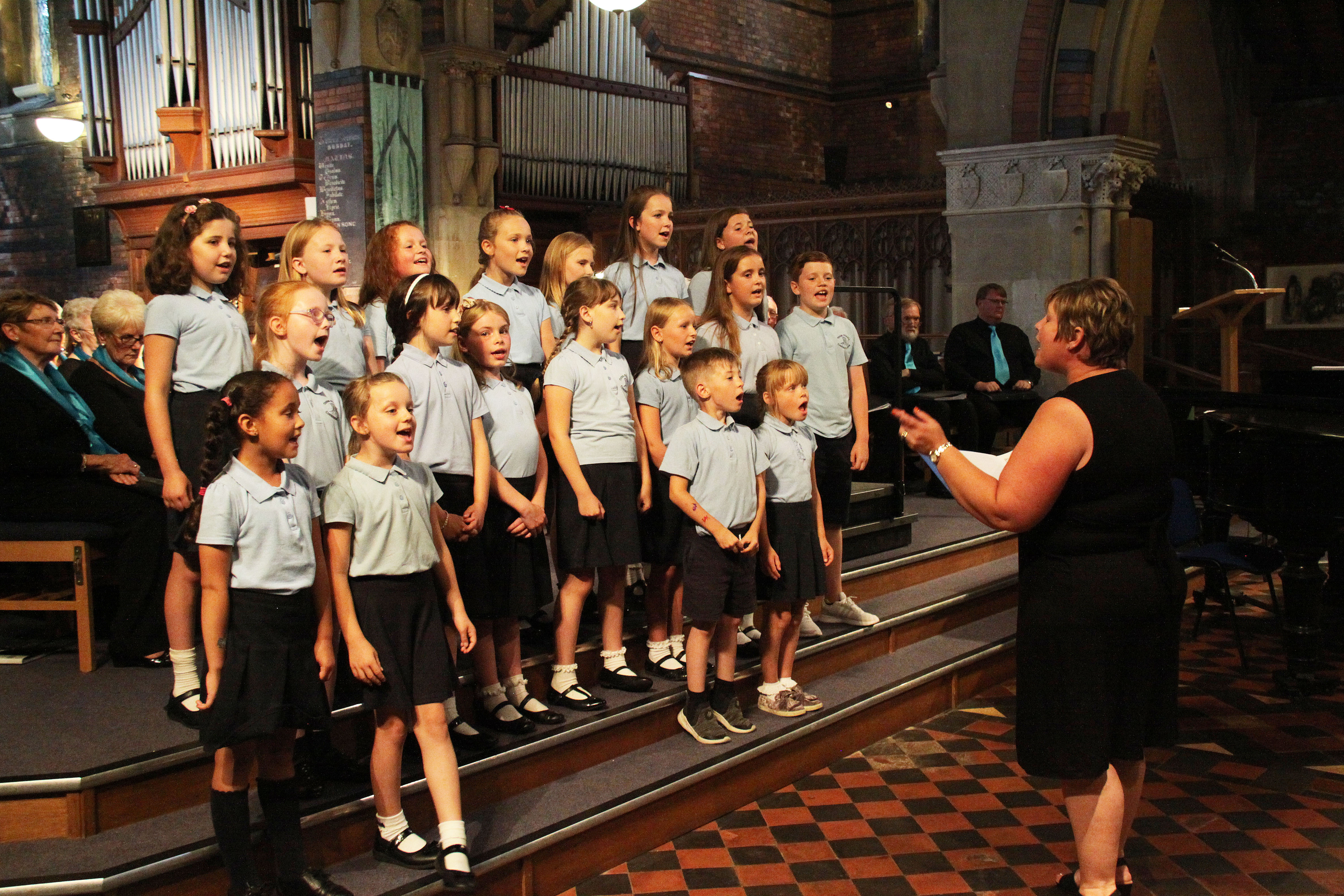 - Shan Thomas conducting Catwg Primary School Choir as they sing and ‘sign’